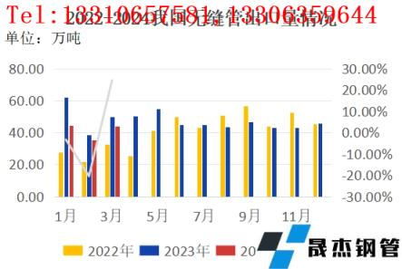 圖32023年—2024年我國厚壁鋼管出口走勢圖
