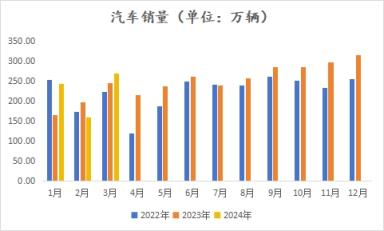 據中國汽車工業協會統計,2024年3月,汽車產銷分別完成268.7萬輛和269.4萬輛,環比分別增長78.4%和70.2%,同比分別增長4%和9.9%。2024年1-3月,汽車產銷分別完成660.6萬輛和672萬輛,同比分別增長6.4%和10.6%。