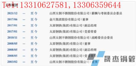 柴志勇先生:中國(guó)國(guó)籍,碩士學(xué)歷,工程師,2002.9-2008.5,本公司總經(jīng)理;2003.2-今,本公司董事;2008.5-今,太鋼集團(tuán)董事;2008.5-2017.1,本公司副總經(jīng)理;2016.12-今,太鋼集團(tuán)副總經(jīng)理;2017.7-今,太鋼集團(tuán)黨委常委。