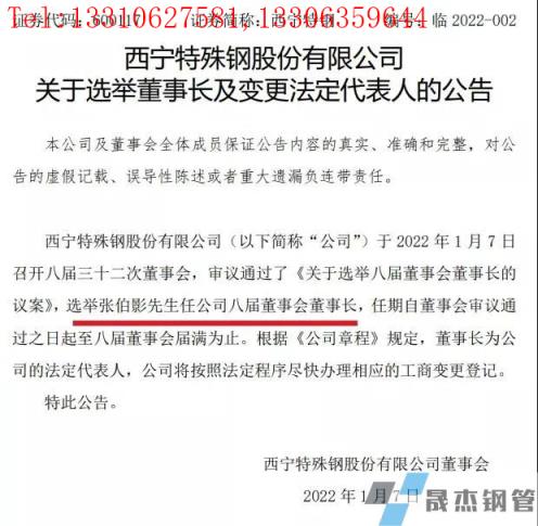 免責聲明:本網站(山東聊城晟杰無縫鋼管廠www.51pvc.cn)刊載的““70后”張伯影任西寧特鋼董事長”等均源于網絡,版權歸原作者所有,且僅代表原作者觀點,本文所載信息僅供參考。轉載僅為學習與交流之目的,如無意中侵犯您的合法權益,請及時聯系刪除。本網站刊登此篇文章并不意味著本站贊同其觀點或證實其內容的真實性,我們不對其科學性、嚴肅性等作任何形式的保證。如果侵犯了您的版權,請盡快聯系我們予以撤銷,謝謝合作!