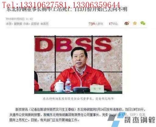 免責聲明:本網站(山東聊城晟杰無縫鋼管廠www.51pvc.cn)刊載的“東北特鋼到底是被誰搞垮的?”等均源于網絡,版權歸原作者所有,且僅代表原作者觀點,本文所載信息僅供參考。轉載僅為學習與交流之目的,如無意中侵犯您的合法權益,請及時聯系刪除。本網站刊登此篇文章并不意味著本站贊同其觀點或證實其內容的真實性,我們不對其科學性、嚴肅性等作任何形式的保證。如果侵犯了您的版權,請盡快聯系我們予以撤銷,謝謝合作!