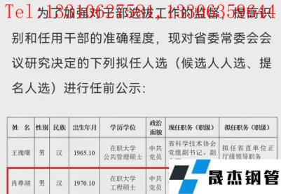 免責聲明:本網站(山東聊城晟杰無縫鋼管廠www.51pvc.cn)刊載的“大變動!涉及多家鋼企董事長、多地市委書記、北大系主任!”等均源于網絡,版權歸原作者所有,且僅代表原作者觀點,本文所載信息僅供參考。轉載僅為學習與交流之目的,如無意中侵犯您的合法權益,請及時聯系刪除。本網站刊登此篇文章并不意味著本站贊同其觀點或證實其內容的真實性,我們不對其科學性、嚴肅性等作任何形式的保證。如果侵犯了您的版權,請盡快聯系我們予以撤銷,謝謝合作!