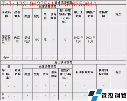 12月24日,四川省經信廳發布成渝釩鈦科技有限公司提釩轉爐建設項目產能置換方案。方案表明,成渝釩鈦科技有限公司擬于2022年2月在內江市新建100t提釩轉爐1座,產能13萬噸/年,預計2022年8月投產。