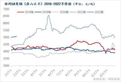從近五年價(jià)格來看,2021年整體價(jià)格較往年明顯抬升,以鄭州5#角鋼(唐山正豐)為例,2021年均價(jià)較2020同期上升36.96%,最高點(diǎn)為五月份6550元/噸,比2020年十二月份峰值高1950元/噸。進(jìn)入本月,河南地區(qū)型鋼價(jià)格小幅上漲,1月份雖然河南多地疫情頻發(fā),交通運(yùn)輸管控加嚴(yán),下游采購(gòu)進(jìn)度受限,整體需求表現(xiàn)不佳,但受到原材料鐵礦及環(huán)保政策等因素的影響,價(jià)格趨強(qiáng)運(yùn)行。截止目前,河南疫情得以有效控制,考慮到春節(jié)假期過后,下游逐步復(fù)工,需求好轉(zhuǎn),預(yù)計(jì)市場(chǎng)價(jià)格有一定上漲空間。