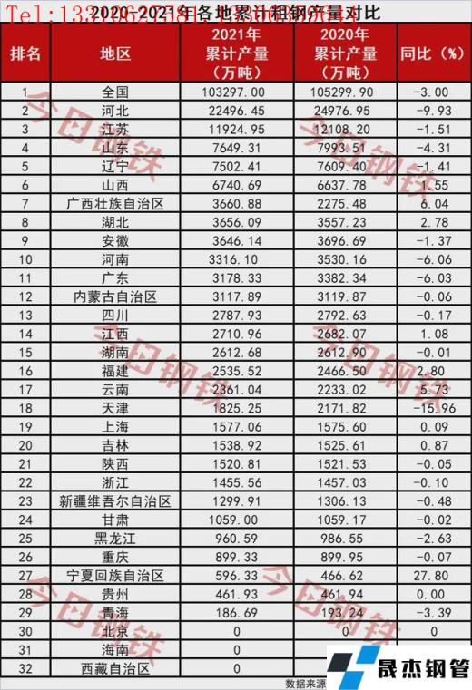 免責聲明:本網站(山東聊城晟杰無縫鋼管廠www.51pvc.cn)刊載的“2021年壓減粗鋼產量任務完成!今年壓減或超2000萬噸!”等均源于網絡,版權歸原作者所有,且僅代表原作者觀點,本文所載信息僅供參考。轉載僅為學習與交流之目的,如無意中侵犯您的合法權益,請及時聯系刪除。本網站刊登此篇文章并不意味著本站贊同其觀點或證實其內容的真實性,我們不對其科學性、嚴肅性等作任何形式的保證。如果侵犯了您的版權,請盡快聯系我們予以撤銷,謝謝合作!