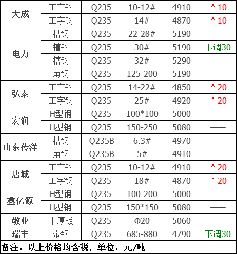 今日型、板材共9家鋼廠調(diào)價發(fā)布,其中: