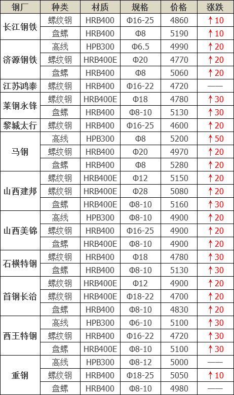 上調(diào)3家,占比33.3%,調(diào)價幅度10-20元/噸;