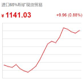 19日,根據(jù)今日鐵礦的價(jià)格顯示,進(jìn)口65%粉礦現(xiàn)貨貿(mào)易價(jià)格漲9.96收于1141.03元/噸,漲幅0.88%;進(jìn)口65%粉礦到岸價(jià)漲1.05收于155.65美元/噸;國產(chǎn)65%鐵精礦走穩(wěn)收于1008.16元/噸。