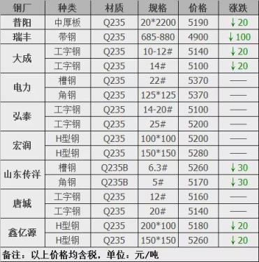 下調(diào)5家,占比55.7%,調(diào)價幅度20-100元/噸;