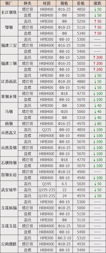 漲幅最高為福建三鋼建材;