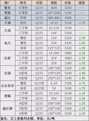 下調7家,占比63.7%,調價幅度20-70元/噸;