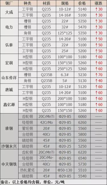 今日型、特鋼共10家無縫鋼管廠家調價發布,其中: