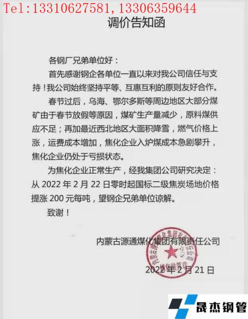 考慮運(yùn)費(fèi)等價(jià)格上漲,自2月22日零時(shí)起對(duì)二級(jí)焦炭?jī)r(jià)格上調(diào)200元/噸,具體內(nèi)容如下: