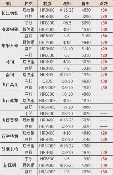 2月22日12點起,河南安陽新普鋼筋切頭、沖豆料型上調20元/噸,其它料型不動。最新采購價:重廢10厚3650,6厚3600;工業廢鋼10厚3530,6-10厚3480,4-6厚3370;沖豆一級3680二級3630,鋼筋切頭一級3700二級3650,單位:元/噸。