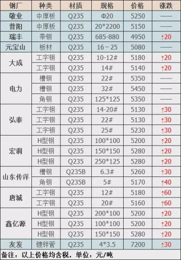 22日廣西防城港福城漲價40-50:邊角料,工字鋼,鋼板,鋼筋頭3320,純生鐵3280,重廢3250,厚剪3210,普通剪料3130,輕型剪料、統料、打包料停收,不含稅,單位:元/噸。