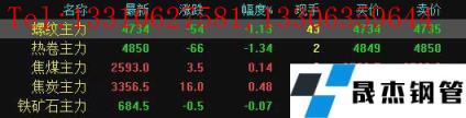 今日螺紋主力期貨跌54,收報4743,跌幅1.13%;熱卷主力跌66,收報4850,跌幅1.34%;焦煤主力漲3.5,收報2593,漲幅0.14%;焦炭主力漲16,收報3356.5,漲幅0.48%;鐵礦石主力跌0.07,收報684.5,跌幅0.07%。