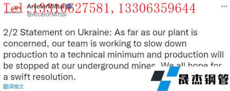 貿(mào)易消息人士稱,烏克蘭的幾家鋼鐵廠,包括管道制造集團 Interpipe以及位于馬里烏波爾的 Azovstal 和 Ilyich 無縫鋼管廠家,都是 Metinvest 的一部分,已經(jīng)停止生產(chǎn)和運輸。Interpipe 向 Platts 證實,它已于2月初停止生產(chǎn)和發(fā)貨。2月24日開始罷工。