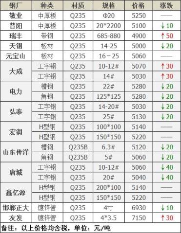 上調(diào)6家,占比24%,調(diào)價(jià)幅度10-50元/噸,
