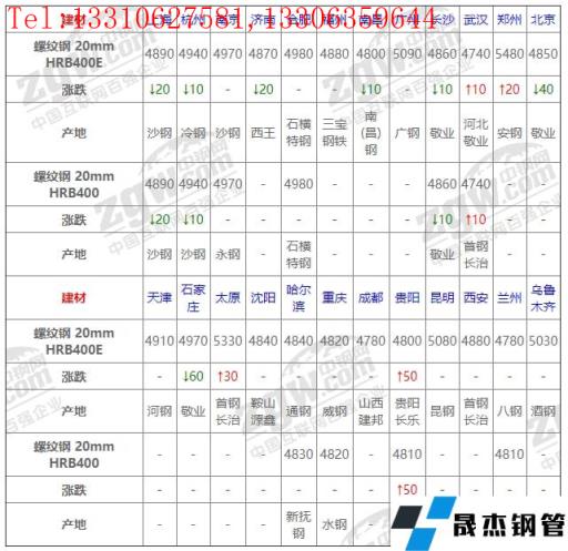 免責聲明:本網站(山東聊城晟杰無縫鋼管廠www.51pvc.cn)刊載的“3月4日全國鋼材_無縫鋼管實時價格!”等均源于網絡,版權歸原作者所有,且僅代表原作者觀點,本文所載信息僅供參考。轉載僅為學習與交流之目的,如無意中侵犯您的合法權益,請及時聯系刪除。本網站刊登此篇文章并不意味著本站贊同其觀點或證實其內容的真實性,我們不對其科學性、嚴肅性等作任何形式的保證。如果侵犯了您的版權,請盡快聯系我們予以撤銷,謝謝合作!