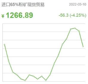 3月11日,根據(jù)今日鐵礦的消息來看,本周進(jìn)口鐵礦石價(jià)格整體下跌,而國(guó)產(chǎn)鐵礦價(jià)格走勢(shì)良好。分類別來看,進(jìn)口65%粉礦現(xiàn)貨貿(mào)易價(jià)格1266.89元/噸,較前一個(gè)交易日下跌56.3,跌幅4.25%;進(jìn)口65%粉礦到岸價(jià)格186.69美元/噸,較前一個(gè)交易日下跌2.26,跌幅1.2%;國(guó)產(chǎn)65鐵精礦漲0.91收于1057.58元/噸,漲幅0.09%;國(guó)產(chǎn)62%鐵精礦漲0.75收于944.37元/噸,漲幅0.08%。