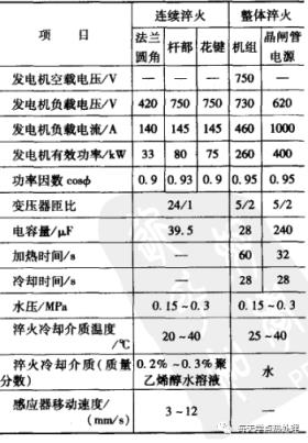 ▼表1040MnB鋼半軸表面感應淬火工藝參數(EQ1090)
