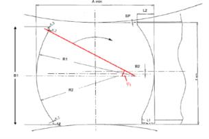 導(dǎo)盤(pán)的輪廓是由一般有兩個(gè)半徑入口半徑R2、出口半徑R1組成,根據(jù)經(jīng)驗(yàn)我們可以確定其值的大小: