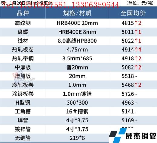 建筑鋼材:1月26日,全國31個主要城市20mm三級抗震螺紋鋼均價4815元/噸,較上個交易日上漲2元/噸。具體來看,多數市場商家都已休市,國內建筑鋼材價格主流持穩,個別地區小幅上漲,主要在西北區域,以無縫鋼管廠家推漲為主。短期來看,近期市場整體延續供需雙弱格局,預計27日國內建筑鋼材價格平穩過渡。