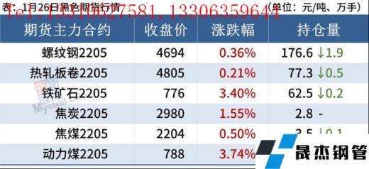 進口礦:1月26日,東北地區進口礦鐵礦石現貨市場小幅上漲,有價無市,整體交投冷清。目前鲅魚圈港口現貨資源有PB粉,紐曼粉和金步巴。臨近春節,絕大部分無縫鋼管廠家已完成年前補庫,整體需求趨于平淡;考慮到目前港口資源較少,且壓港嚴重,節前難以緩解,貿易商方面低價出售意愿較低,預計東北地區鐵礦石現貨價格或將穩中偏強運行。