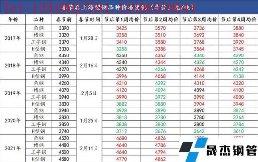 附:近五年上海型材春節(jié)均價(jià)走勢(shì):