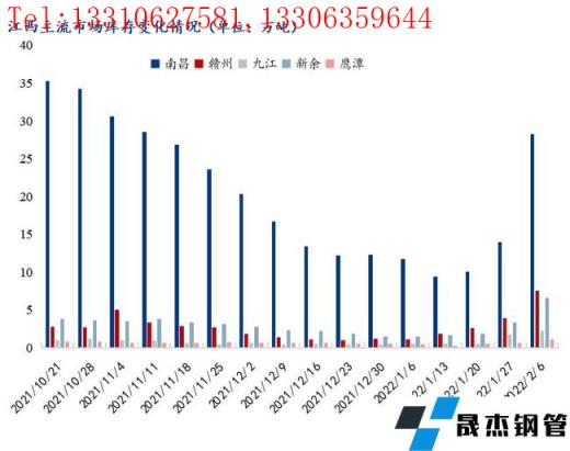 從本周各主流市場庫存走勢來看,春節期間江西各市場庫存均有明顯增量。一方面,1月底江西省主流無縫厚壁鋼管廠家檢修無縫厚壁鋼管廠家基本復產,無縫厚壁鋼管廠家正常發貨,另一方面,春節放假,省內多數工地基本停工,終端采購需求基本停滯,資源快速增加。