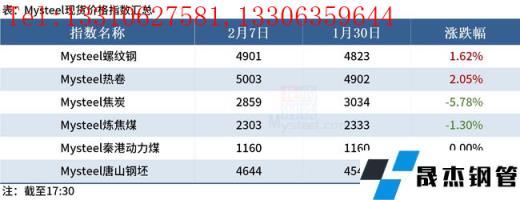 免責聲明:本網站(山東聊城晟杰無縫鋼管廠www.51pvc.cn)刊載的“2022年02月07日晚餐:唐山鋼坯上調100,鋼材_無縫鋼管總庫存增超30%”等均源于網絡,版權歸原作者所有,且僅代表原作者觀點,本文所載信息僅供參考。轉載僅為學習與交流之目的,如無意中侵犯您的合法權益,請及時聯系刪除。本網站刊登此篇文章并不意味著本站贊同其觀點或證實其內容的真實性,我們不對其科學性、嚴肅性等作任何形式的保證。如果侵犯了您的版權,請盡快聯系我們予以撤銷,謝謝合作!