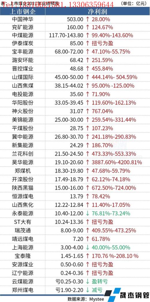 免責聲明:本網站(山東聊城晟杰無縫鋼管廠www.51pvc.cn)刊載的“29家上市煤企業績飄紅,15家實現凈利潤翻倍增長”等均源于網絡,版權歸原作者所有,且僅代表原作者觀點,本文所載信息僅供參考。轉載僅為學習與交流之目的,如無意中侵犯您的合法權益,請及時聯系刪除。本網站刊登此篇文章并不意味著本站贊同其觀點或證實其內容的真實性,我們不對其科學性、嚴肅性等作任何形式的保證。如果侵犯了您的版權,請盡快聯系我們予以撤銷,謝謝合作!