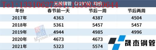 免責聲明:本網站(山東聊城晟杰無縫鋼管廠www.51pvc.cn)刊載的“近5年春節前后全國鋼材_無縫鋼管市場走勢”等均源于網絡,版權歸原作者所有,且僅代表原作者觀點,本文所載信息僅供參考。轉載僅為學習與交流之目的,如無意中侵犯您的合法權益,請及時聯系刪除。本網站刊登此篇文章并不意味著本站贊同其觀點或證實其內容的真實性,我們不對其科學性、嚴肅性等作任何形式的保證。如果侵犯了您的版權,請盡快聯系我們予以撤銷,謝謝合作!