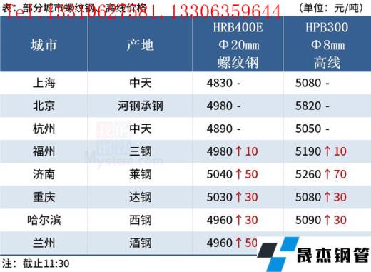 ◎濟南:9日早盤建材市場價格漲50-70。萊鋼螺紋4970,永鋒、石橫螺紋4960,永鋒、石橫盤螺5260。(單位:元/噸)