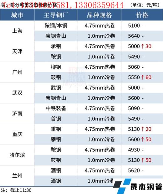 ◎武漢:9日早盤冷軋市場價格部分上漲50,1.0寶鋼青山卷5600,1.5卷5570,3.0卷6150。(單位:元/噸)