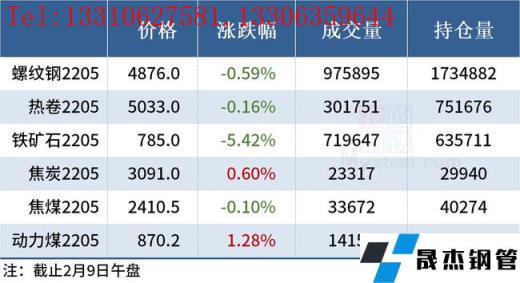 免責聲明:本網站(山東聊城晟杰無縫鋼管廠www.51pvc.cn)刊載的“2022年02月09日午報:鋼價多數上漲,鐵礦石期貨跌逾5%”等均源于網絡,版權歸原作者所有,且僅代表原作者觀點,本文所載信息僅供參考。轉載僅為學習與交流之目的,如無意中侵犯您的合法權益,請及時聯系刪除。本網站刊登此篇文章并不意味著本站贊同其觀點或證實其內容的真實性,我們不對其科學性、嚴肅性等作任何形式的保證。如果侵犯了您的版權,請盡快聯系我們予以撤銷,謝謝合作!