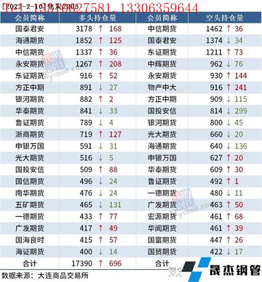 截至2月10日收盤,螺紋鋼2205收4955元/噸,漲1.52%;熱卷2205收5069元/噸,漲0.72%;鐵礦石2205收821.5元/噸,漲3.2%。