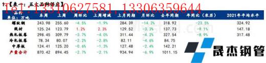 庫存方面,五大品種厚壁無縫鋼管總庫存連續(xù)六周累增,環(huán)比上周增加159.65萬噸,增幅7.9%;其中建材庫存增加111.2萬噸,增幅為8.4%;板材庫存增加48.45萬噸,增幅6.8%。