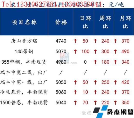 今日唐山管帶價格趨穩運行,其中355帶鋼穩,145帶鋼較昨日漲100元/噸,焊管、鍍鋅管價格穩。355帶鋼市場價格先漲后跌,較昨日整體趨穩運行。受今日黑色系期貨沖高回落影響,市場心態發生變化,對價格偏觀望,謹慎操作為主,成交清淡。