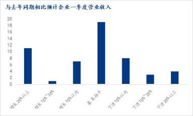 調研樣本企業中,與去年同期相比預計企業一季度營業收入有增長的占比為35.85%;基本持平的占比為35.85%;與去年同期相比預計企業一季度營業收入有下滑的占比為28.3%。