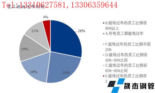 本次調研樣本企業中所有員工均就地過年的占比24%,就地過年員工比例在80%以上的占比28%,就地過年員工比例在60%-80%的占比11%,就地過年員工比例在40%-60%的占比15%,就地過年員工比例40%以下的占比22%。