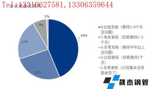 本次調研樣本企業中現金流比較充裕和非常充裕的占比66%,有些緊張的占比26%,比較緊張和非常緊張的占比8%。