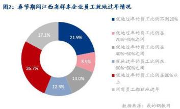 據調研,春節期間江西省樣本企業所有員工都放假停工的企業占調研樣本比例為52.7%,放假停工的員工比例不到20%的企業僅占比5.5%;放假停工的員工比例在60%以上的企業樣本占比達到89%。