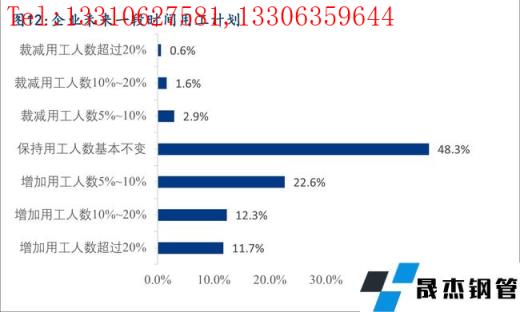 據調研,目前企業在崗員工人數與實際需求基本匹配的占比為48.0%,35.5%的企業目前在崗員工人數與實際需求相比存在少量的缺口,46.6%的企業在未來一段時間內有增加用工人數的計劃,由此可見未來一段時間內行業用工需求依然較大,僅僅只有5.1%的企業未在崗員工人數超過實際需求,預計未來一段時間會有少量的人員裁減計劃。
