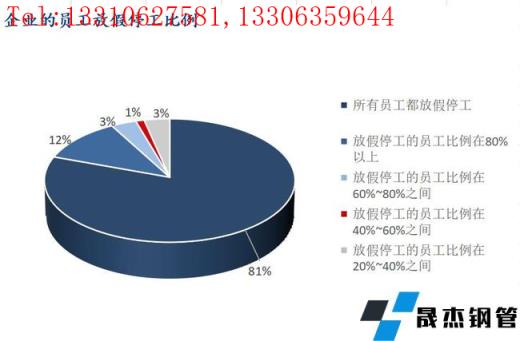 5、樣本企業(yè)員工放假停工比例:所有員工都停工放假的企業(yè)占比78.65%;放假停工的員工比例在80%以上的企業(yè)占比11.24%;放假停工的員工比例在60%~80%的企業(yè)占比8%;放假停工的員工比例在40%~60%的企業(yè)占比1.12%,放假停工的員工比例在20%~40%的企業(yè)占比3.37%,放假停工的員工比例不到20%的企業(yè)占比2.25%。