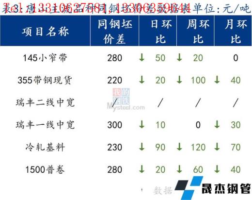 145帶鋼與鋼坯價差明顯收窄,焊管與355帶鋼價差小幅收窄。熱卷與帶鋼價差持平。