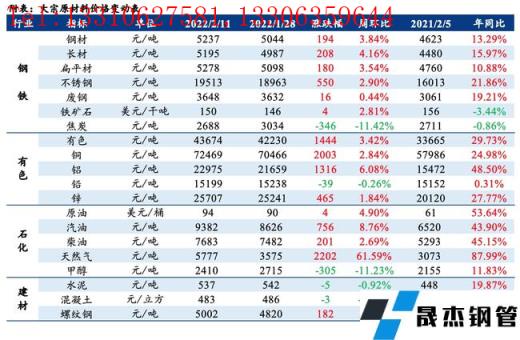 免責(zé)聲明:本網(wǎng)站(山東聊城晟杰無縫鋼管廠www.51pvc.cn)刊載的“周報(bào):大宗原材料價(jià)格周報(bào)(2.07-2.11)”等均源于網(wǎng)絡(luò),版權(quán)歸原作者所有,且僅代表原作者觀點(diǎn),本文所載信息僅供參考。轉(zhuǎn)載僅為學(xué)習(xí)與交流之目的,如無意中侵犯您的合法權(quán)益,請(qǐng)及時(shí)聯(lián)系刪除。本網(wǎng)站刊登此篇文章并不意味著本站贊同其觀點(diǎn)或證實(shí)其內(nèi)容的真實(shí)性,我們不對(duì)其科學(xué)性、嚴(yán)肅性等作任何形式的保證。如果侵犯了您的版權(quán),請(qǐng)盡快聯(lián)系我們予以撤銷,謝謝合作!