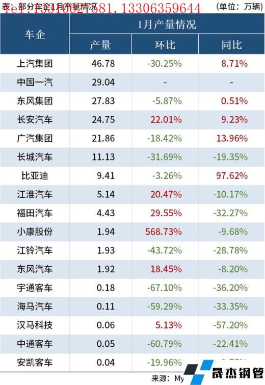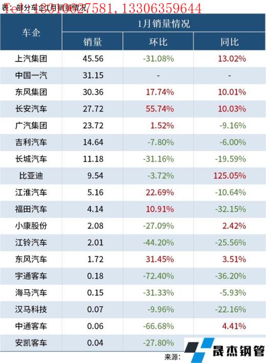 免責聲明:本網站(山東聊城晟杰無縫鋼管廠www.51pvc.cn)刊載的“1月我國汽車產銷降幅明顯,多數車企呈現雙位數下跌”等均源于網絡,版權歸原作者所有,且僅代表原作者觀點,本文所載信息僅供參考。轉載僅為學習與交流之目的,如無意中侵犯您的合法權益,請及時聯系刪除。本網站刊登此篇文章并不意味著本站贊同其觀點或證實其內容的真實性,我們不對其科學性、嚴肅性等作任何形式的保證。如果侵犯了您的版權,請盡快聯系我們予以撤銷,謝謝合作!