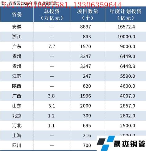據(jù)不完全統(tǒng)計(jì),截至2月16日,廣東、江西、江蘇、北京、上海、貴州、山東、浙江、四川、廣西、陜西、河北、安徽等13個(gè)省份發(fā)布了2022年重點(diǎn)項(xiàng)目清單,合計(jì)共24778個(gè)項(xiàng)目。除四川以外,12省份年度計(jì)劃投資額合計(jì)超7.28萬(wàn)億元。