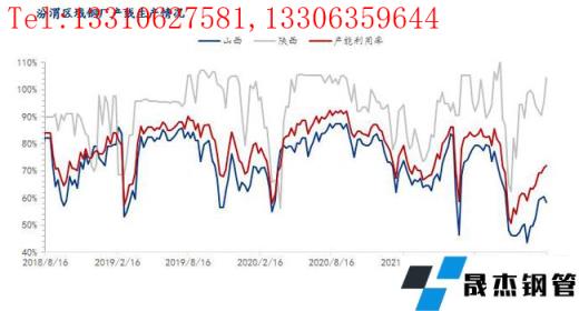 山西區域:本周山西區域部分無縫厚壁鋼管廠家軋線由于環保政策加嚴,有不飽和生產現象,本周整體產量為30.6萬噸,較上周減少1.15萬噸,產能利用率為58.44%,周環比下降2.2%。